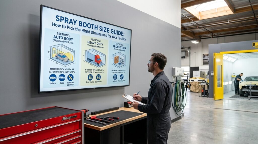 Spray Booth Size Guide to choose the right dimensions clearance airflow and compliance for automotive and industrial finishing booths