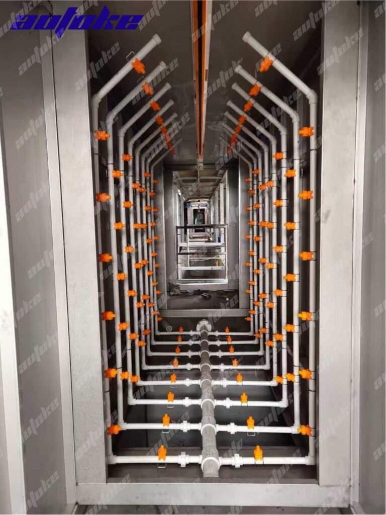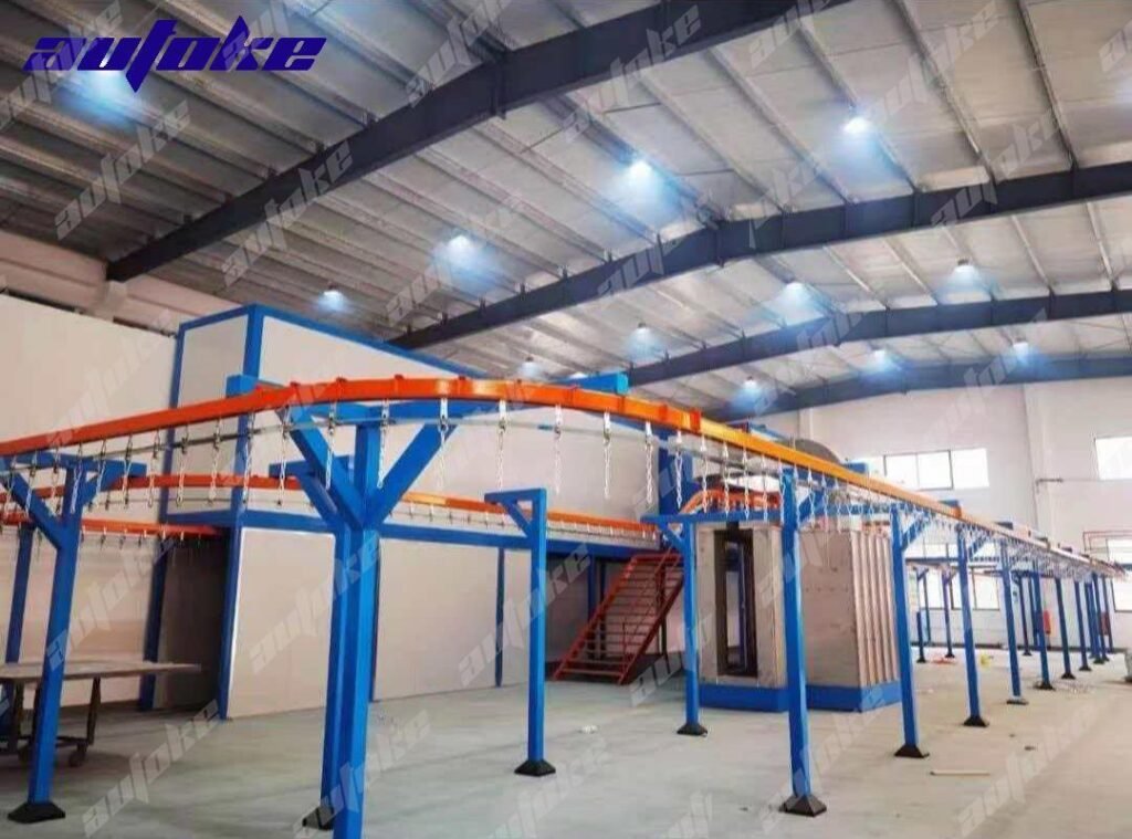 AUTOKE Spray Painting Line is not a single piece of equipment, but rather a complete automated coating production system. It integrates all stages of the powder coating process into a continuous, high-efficiency operation.